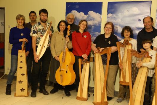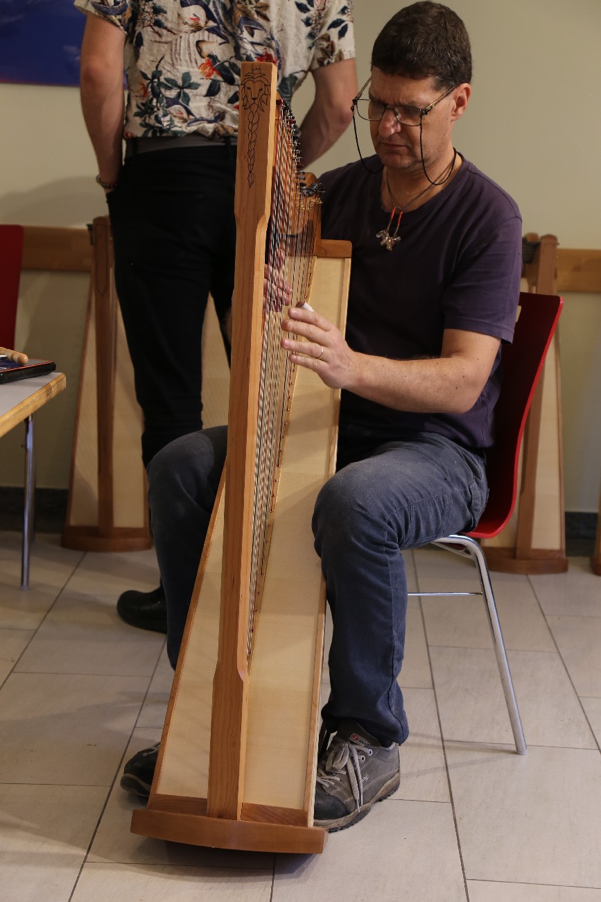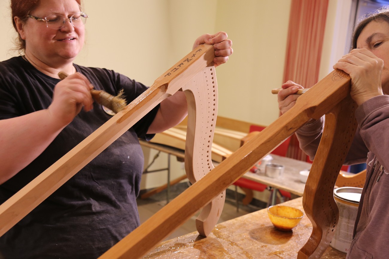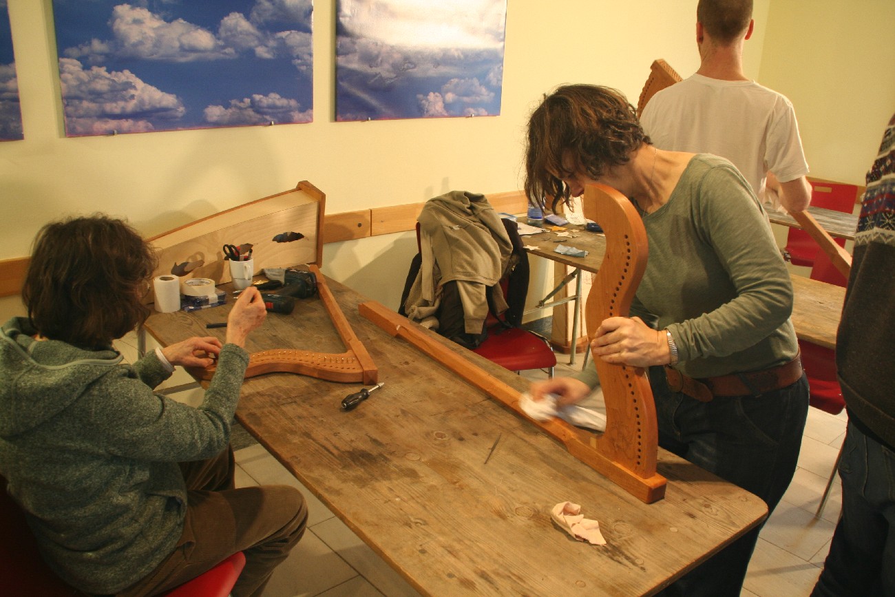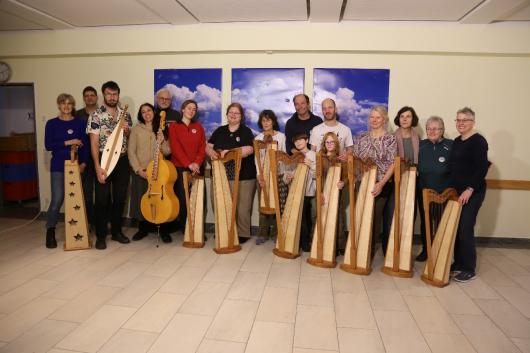 Auch für 2026 organisierte Resia Lehmacher aus Bonn wieder den Bau- und Spielkurs in der Jugendherberge Bad Honnef und es hat wieder unglaublich viel Spaß gemacht. Tagsüber wurde im Baukurs fleißig geraspelt, geschliffen und geschnitzt, während im Harfenspielkurs -unter der Leitung von Tom Daun- die Finger zu glühen begannen.