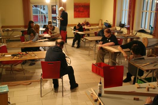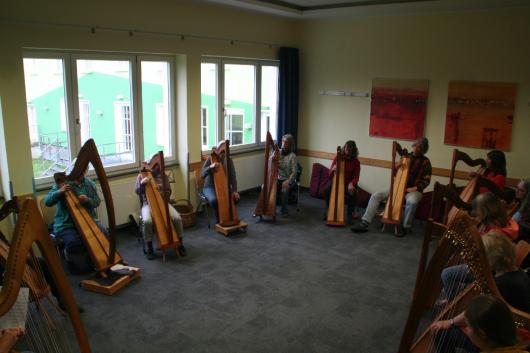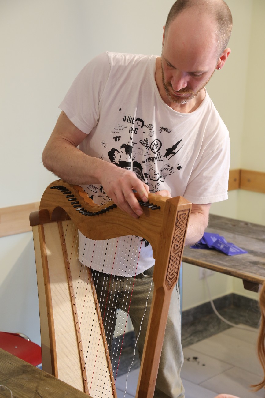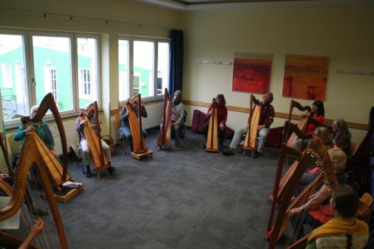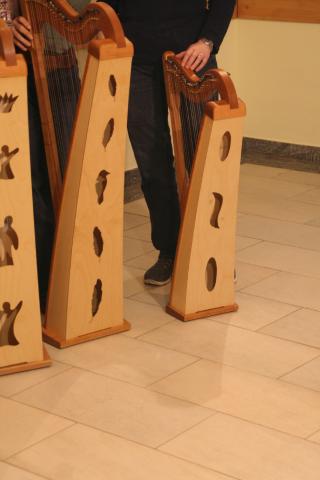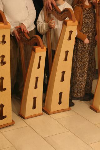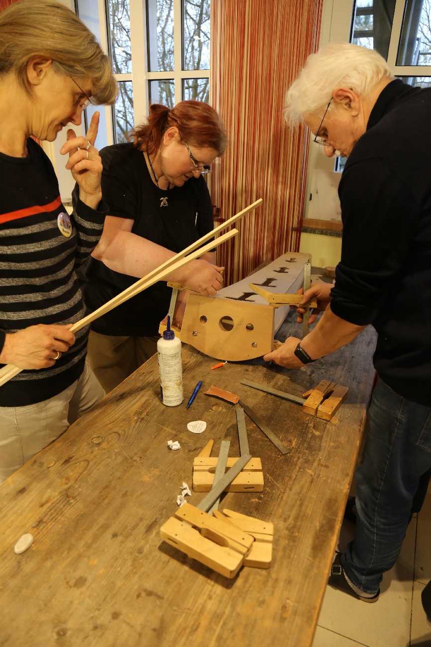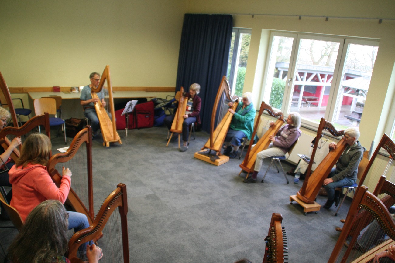 Auch für 2026 organisierte Resia Lehmacher aus Bonn wieder den Bau- und Spielkurs in der Jugendherberge Bad Honnef und es hat wieder unglaublich viel Spaß gemacht. Tagsüber wurde im Baukurs fleißig geraspelt, geschliffen und geschnitzt, während im Harfenspielkurs -unter der Leitung von Tom Daun- die Finger zu glühen begannen.