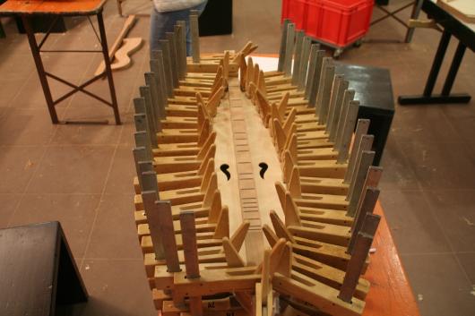 Erstmals waren wir für einen Instrumentenbaukurs auf der Burg Rothenfels am Main und haben die Tage dort sehr genossen. Die Burg hat unglaublich viele verschieden Gruppenräume, schöne Übernachtungszimmer, gutes Essen und vor allem eine große Willkommenskultur, so dass wir uns gleich heimisch und gut aufgehoben fühlten. Unser Baukursraum führte direkt in den grünen Hof der Vorburg, so dass wir bei herrlichem Frühlingswetter auch draußen arbeiten und die Sonne genießen konnten. Erstmals an diesem schönen Kursort hatten sich nur 6 Teilnehmende angemeldet, aber wir hatten dafür um so mehr Spaß im Kurs: Während der Arbeit und an den Abenden wurde gesungen, musiziert, viel erzählt und gelacht.