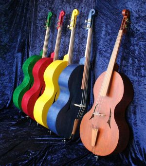 | Größe: etwas größer als ein Cello Farben: natur, blau, weinrot, gelb, grün, braun Verwendete Hölzer: Birkensperrholz, Elsbeere |