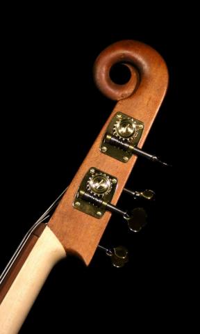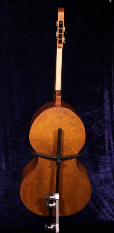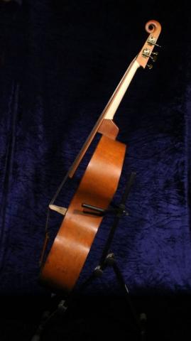 Die Bassgeige ist braun gebeizt und hat ein Griffbrett aus Elsbeere.