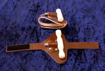 Das Problem des “verlegten Stimmschlüssels” ist sicher jedem, der Harfe spielt, leidlich bekannt. Aus diesem Grund haben wir einen Stimmschlüsselhalter designed und anfertigen lassen, der zwischen die Schall-Löcher der meisten Harfen ganz einfach mit Klettverschluß befestigt werden kann. Der Stimmschlüssel selber klemmt in einer Lederschlaufe und verursacht so keine Klappergeräusche. Wenn man es sich zur Gewohnheit macht, den Stimmschlüssel (anstatt in die Hosentasche) hier zu verstauen, ist er immer griffbereit.