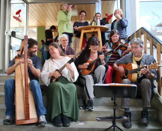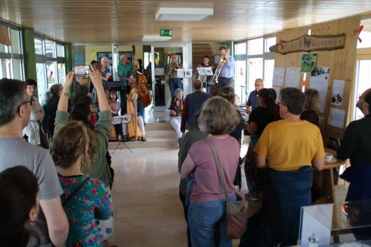 Bei der Musik zum Kaffee gab es viele schöne Musikbeiträge, die Referenten spielten in den kursfreien Zeiten zum Tanz auf, luden die Teilnehmer ein, mit zu spielen und sich auszuprobieren und die "Kioskösen" sorgten dafür, dass alle bei Kräften blieben. So konnten wir bei überwiegend sonnigem Wetter unbeschwerte Stunden in Markt Wald genießen und die Sorgen der Welt für viele Stunden vergessen.
