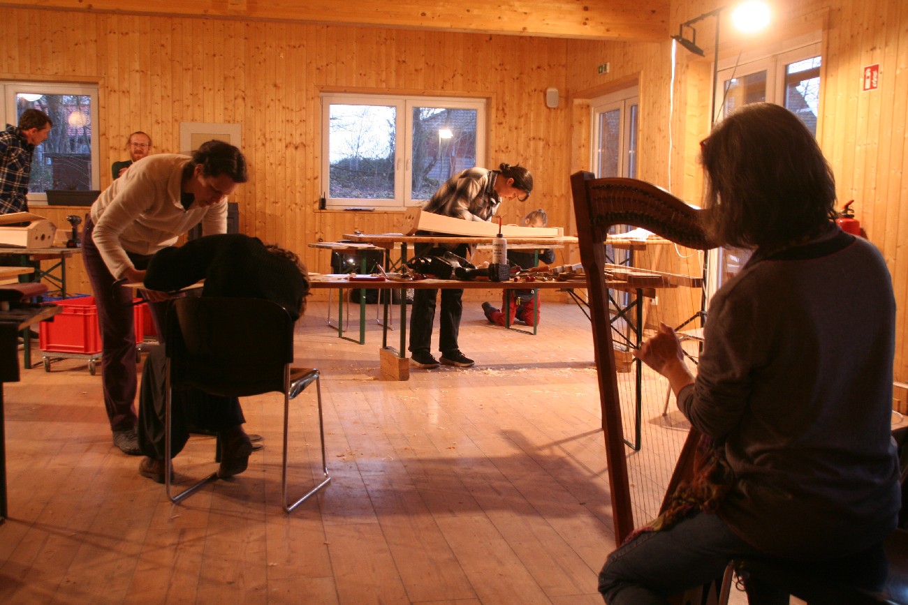 Seit 1998 organisiert Manuela Tietsch einmal im Jahr den Instrumentenbaukurs in Walsrode und seit vielen Jahren auch den zeitgleich stattfindenden Harfenspielkurs.