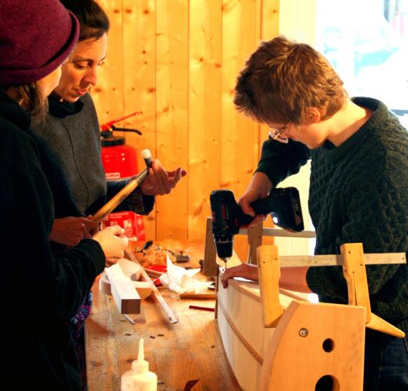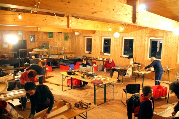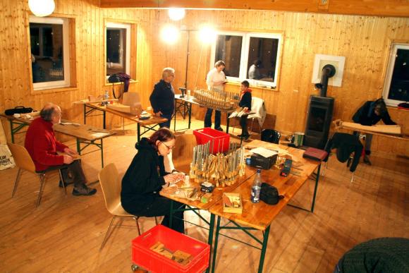 Die Spielkursgruppen fanden Platz im großen Bettenhaus und im Gemeinschaftshaus, während der Baukurs in einem großen Holzhaus seine Bleibe fand. Mit Holzofen geheizt, war es anfänglich zwar noch etwas kühl, aber dafür entstand gleich eine angenehme Atmosphäre und beim Arbeiten wurde es uns sowieso bald warm.