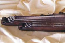 Dies ist die ungarische Form der Bordunzither mit abgestuften Wirbelköpfen,die in Ungarn auch die "Pferdeköpfige" genannt wird.