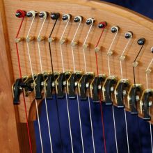 Um den heutigen Ansprüchen, die an Harfen gestellt werden, gerecht zu werden, haben wir die Saitenspannungen gegenüber den Originalen etwas erhöht, die Saitenabstände etwas weiter gemacht, die stimmungsanfälligen Darmsaiten durch Kunststoffsaiten und die primitiven Haken durch moderne, justierbare Halbtonklappen ersetzt.