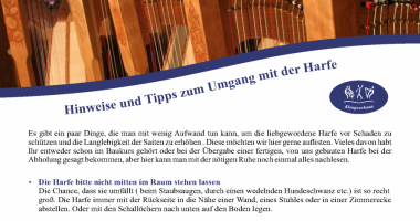Hinweise und Tipps zum Umgang mit der Harfe