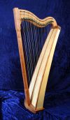 Mit ihren 15 Saiten und einer Höhe von ca. 65 cm ist die Harfe recht klein und somit musikalisch eher als Bindeglied zwischen Psalterien und Harfen zu sehen. Sie wird häufig als Begleitinstrument zum Singen oder Märchenerzählen eingesetzt. Das verwendete Holz ist Elsbeere, Kirschbaum und Fichte.