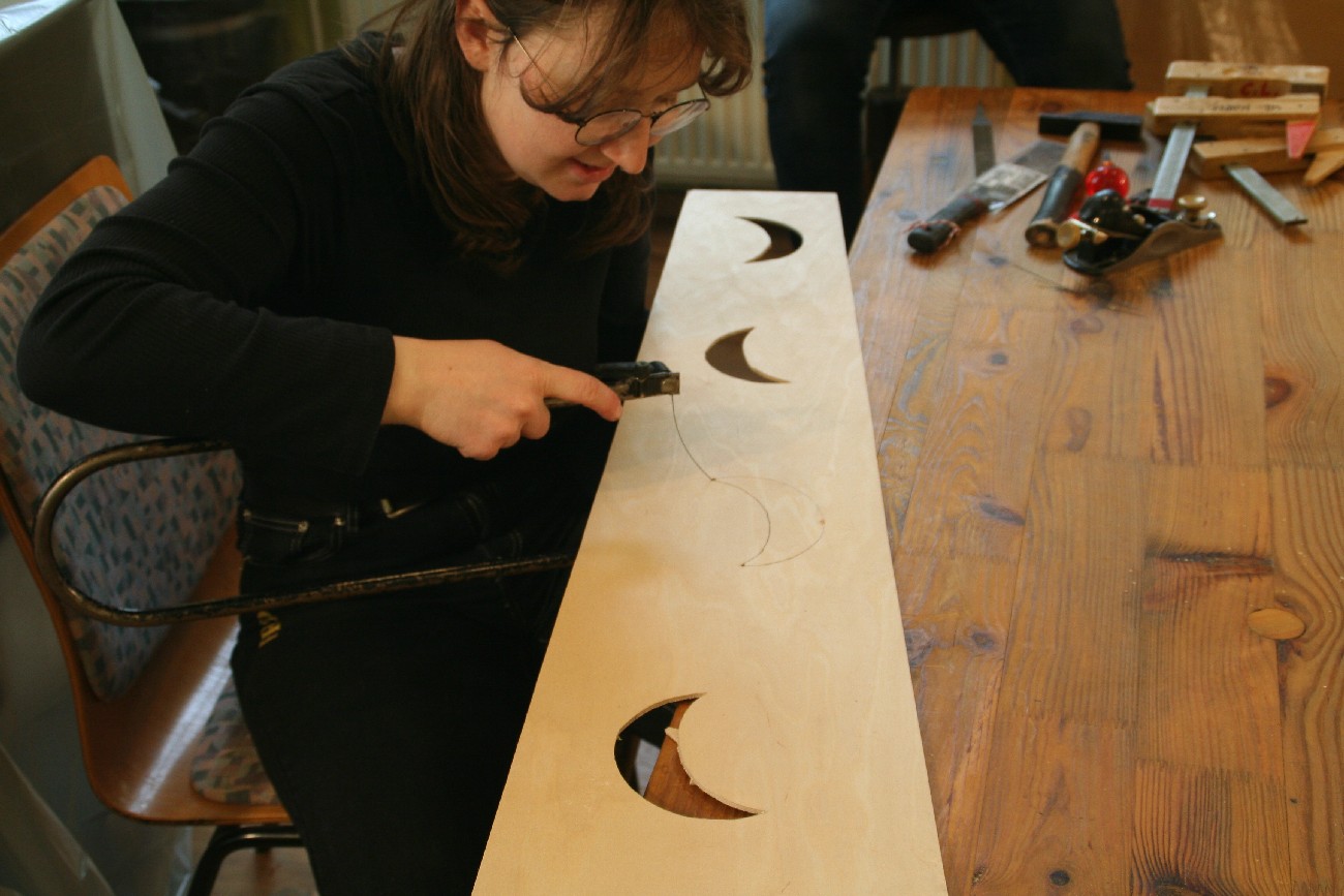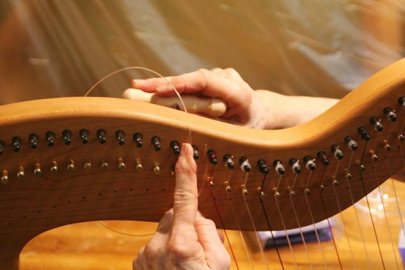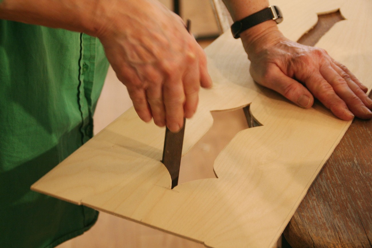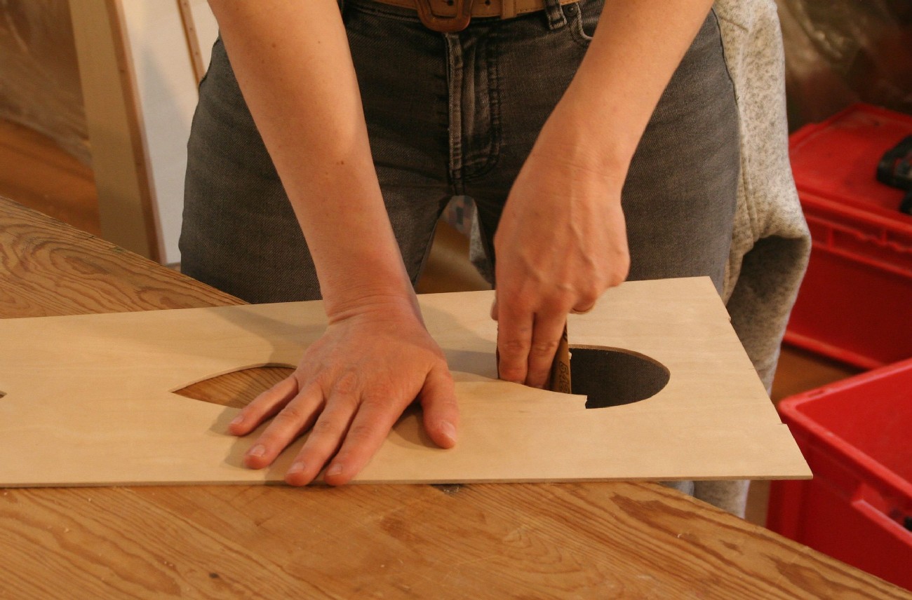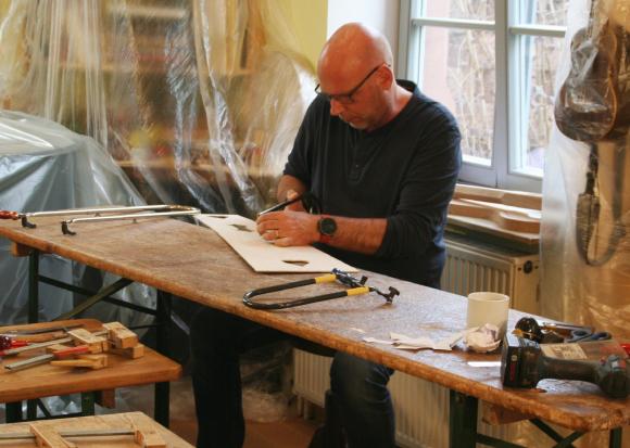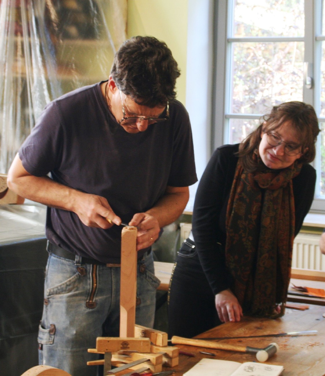 Schon seit einigen Jahren finden in den 2 Räumen der kleinen, privaten Musikschule von Markus Tyroller im Ortsteil Peterstal Instrumentenbaukurse statt. So richteten wir uns auch in diesem Jahr wieder unsere Werkstatt dort ein und verbrachten das Wochenende in entspannter und gleichzeitig sehr kreativer Atmosphäre. Zwischendurch spielte immer mal wieder jemand mit einer Harfe oder auf anderen Instrumenten der Musikschule, so dass die Vorfreude auf das Instrument, an dem jeder gerade baute, noch größer wurde.