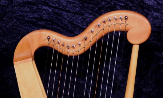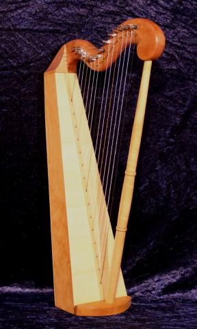 Es handelt sich bei dieser Harfe um die Kleine Harfe mit 15 Saiten. Sie wird häufig als Begleitinstrument zum Singen oder Märchenerzählen eingesetzt. Das verwendete Holz ist Elsbeere, Kirschbaum und Fichte.