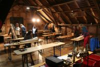 Die Lebensgemeinschaft Clodramühle/Unterhammer www.clodrahammer.de wird vom Konzept der Selbstversorgung und dem nachhaltigen Umgang mit unserer Erde getragen. Dementsprechend besteht die Versorgung aus eigenen Rohstoffen und die Teilnehmer können neben ihren Bautätigkeiten die naturnahe Lebensweise der Hofgemeinschaft im schönen Thüringer Elstertal kennenlernen. Die Unterbringung ist sehr einfach, auf Matratzenlagern, im Auto oder im Gartenhaus. Natürlich kann man auch im Garten zelten. Es gibt eine holzbeheizbare Dusche und ein Kompostklo. Wer mehr Komfort braucht, kann sich auch in nahegelegenen Pensionen einmieten. Die Werkstatt werden wir in der unbeheizten Scheune einrichten. Das Mitbringen von warmen Sachen und dicken Schlafsäcken ist also kein Fehler.