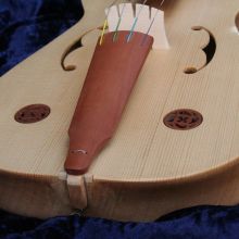 Hals und Korpus unserer Fidel sind aus einem Stück gefertigt, der Klangkörper ist von vorne her ausgehöhlt und wird mit einer Fichtendecke geschlossen. Die 4 Saiten haben die gleiche Stimmung und schwingende Länge (Mensur) wie heutige Geigen, so daß dem Spieler die Umstellung auf dieses alte Instrument nicht schwer fällt.