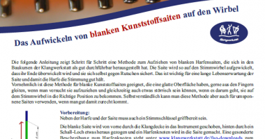 Damit man aber besser sieht, und auch ganz genau versteht, worauf es beim Aufwickeln der Saite auf den Stimmwirbel ankommt, haben wir zwei weitere Anleitungen erstellt, die man sich hier herunterladen, ausdrucken und in die Harfentasche stecken kann.
