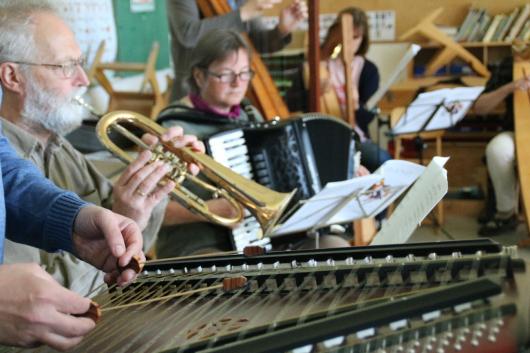 Bei der Musik zum Kaffee gab es viele schöne Musikbeiträge, die Referenten spielten in den kursfreien Zeiten zum Tanz auf, luden die Teilnehmer ein, mit zu spielen und sich auszuprobieren und die "Kioskösen" sorgten dafür, dass alle bei Kräften blieben. So konnten wir bei überwiegend sonnigem Wetter unbeschwerte Stunden in Markt Wald genießen und die Sorgen der Welt für viele Stunden vergessen.