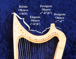 Das Aufziehen der Saiten erfolgt bei diesem Instrument etwas anders, als bei den anderen Harfen üblich. Bei Unsicherheiten diesbezüglich bitte anrufen, damit das Instrument mit der neuen Saite auch wieder einwandfrei funktioniert.