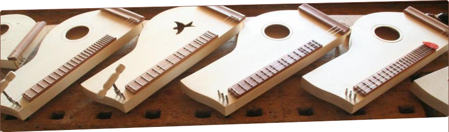 4-saitige Bordunzither mit diatonischen Bünden, wie sie sich bei den europäischen Auswanderern in USA erhalten hat, einfache Ausführung mit schlankem einbauchigem Resonanzkörper